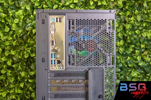 - Panel tylny - rodzaje wejść / wyjść: 2x USB 2.0, 4x USB 3.0, RJ45, złącza AUDIO, P/S2