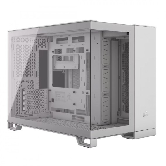 Obudowa komputera z dwiema komorami Mid-Tower CORSAIR 2500X zapewnia wyjątkowy przepływ powietrza i chłodzenie oraz ma panele w całości z siatki i dwie komory, który umożliwiają stworzenie zachwycającej konstrukcji.