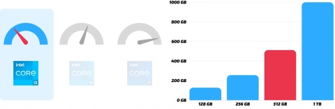 ✅ Dysk: 512GB SSD - pomieścisz tam np. 2,5mln. dokumentów, 160tys. zdjęć średniej jakości, 1600 odcinków ulubionego serialu lub do 700 filmów.
