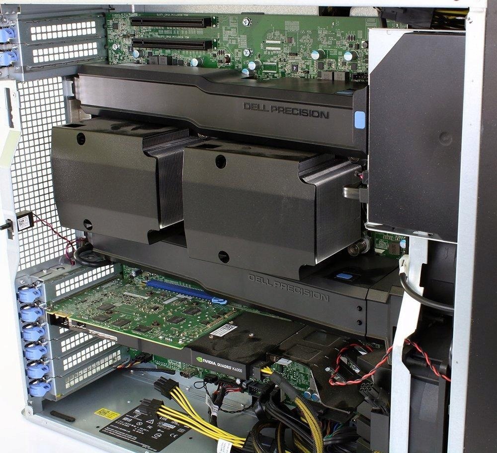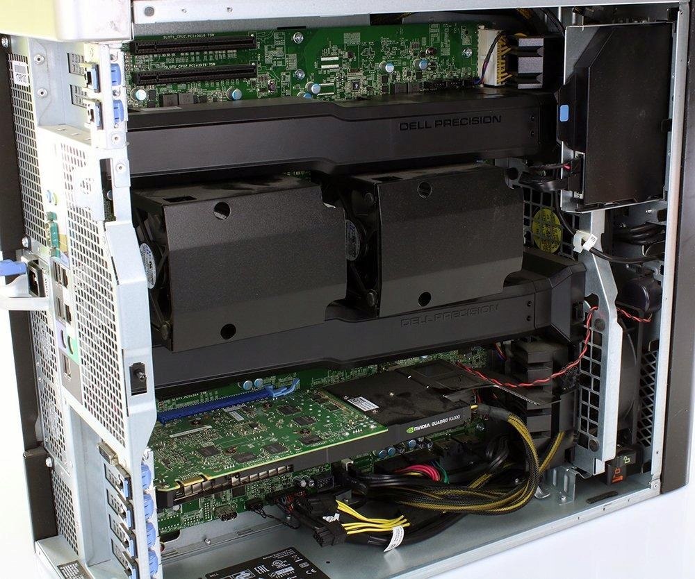 Stacja robocza Dell Precision T7610 umożliwia łatwy dostęp do najważniejszych podzespołów wewnątrz znakomicie uporządkowanej obudowy.