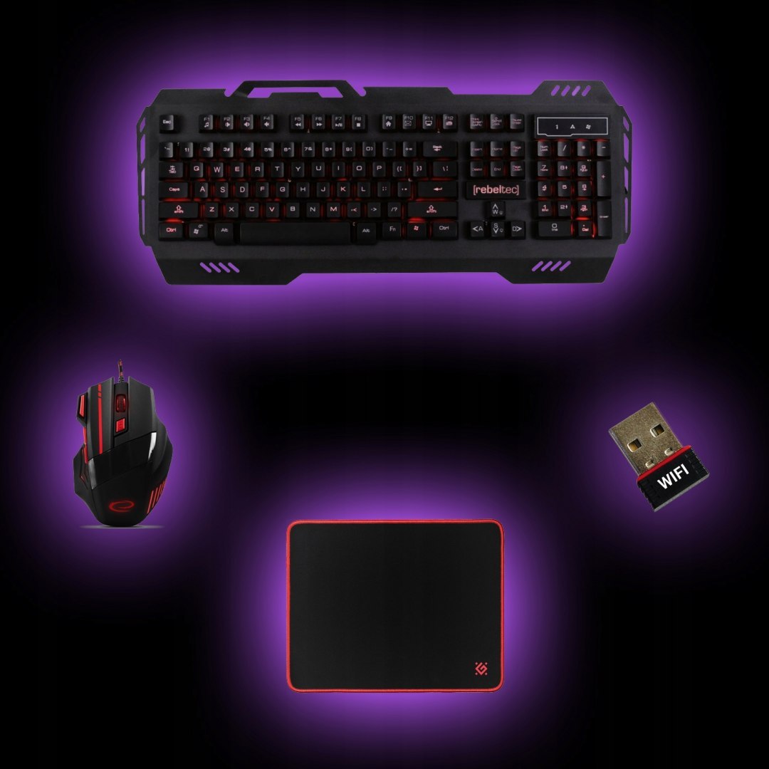 Wszystko co potrzebne abyś mógł grać bez przeszkód! Niezbędne akcesoria wysokiej jakości pozwolą Ci cieszyć się rozrywką natychmiast po odpakowaniu przesyłki. Klawiatura Rebeltec Defender Gaming, mysz Esperanza MX201 Wolf Gaming podłączane poprzez port USB działają natychmiast i nie wymagają dodatkowej konfiguracji a karta WiFi zastąpi nam z powodzeniem konieczność przygotowania okablowania internetowego.