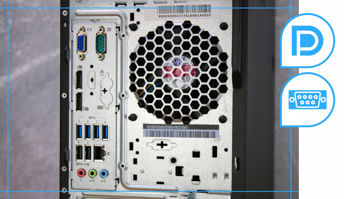 ✅ Tylni panel komputera został wyposażony między innymi w 2 porty DisplayPort. Pozwala to przesyłać obraz w trybie cyfrowym, w wysokiej rozdzielczości.