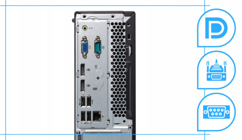 ✅ Tylni panel komputera został wyposażony między innymi w 2 porty DisplayPort. Pozwala to przesyłać obraz w trybie cyfrowym, w wysokiej rozdzielczości.