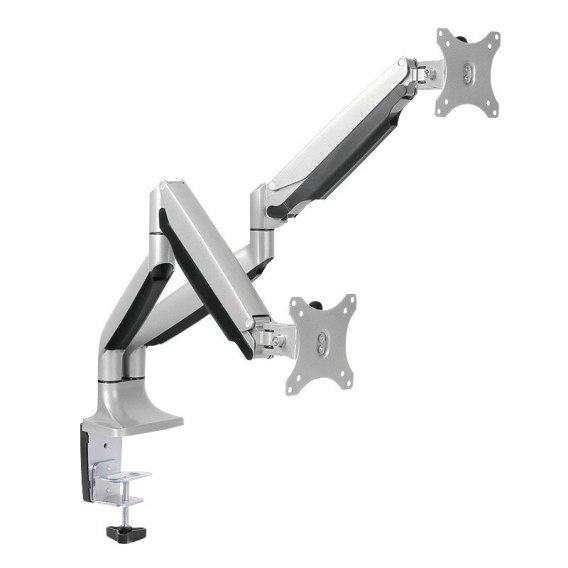 Dodatkowym atutem produktu jest wykorzystanie sprężyny gazowej, która gwarantuje płynność i precyzję ruchu. Dzięki temu monitor zawsze pozostaje w żądanym miejscu, bez względu na intensywność codziennych zmian ustawienia. Konstrukcja wykonana jest z wysokiej jakości aluminium, co przekłada się na jej trwałość, lekkość oraz nowoczesny wygląd, który pięknie komponuje się z każdym wystrojem biura lub pokoju. Dzięki zarządzaniu kablami, uchwyt dyskretnie ukrywa wszystkie kable, nadając przestrzeni schludny i uporządkowany charakter.
