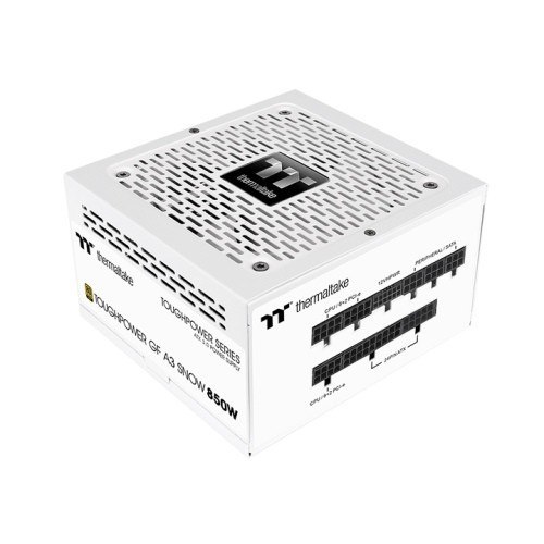 Thermaltake Toughpower GF A3 850W Gold F Modular 12cm Gen5 Snow to zasilacz dla wymagających użytkowników, łączący moc, efektywność i modularność. To rozwiązanie, które zapewnia stabilne zasilanie i estetyczny wygląd wnętrza komputera, sprawdzając się zarówno w grach, jak i w pracy profesjonalnej.