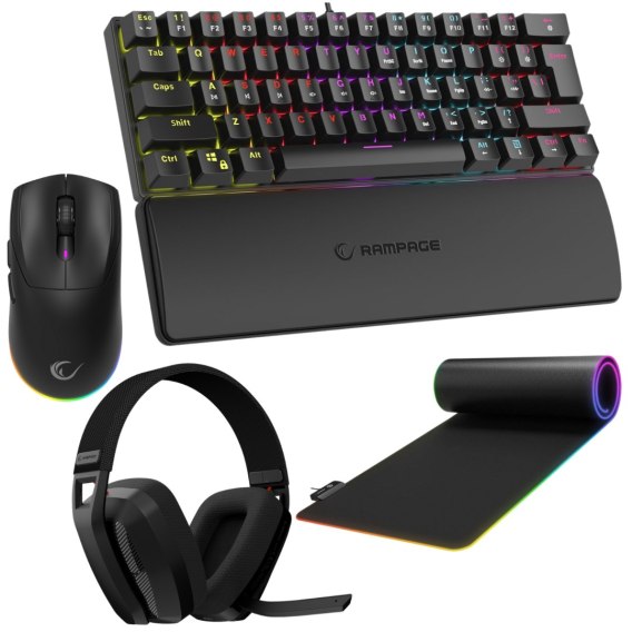 Ten zestaw akcesoriów Rampage został stworzony dla graczy, którzy oczekują wysokiej precyzji, dynamicznego podświetlenia oraz komfortu użytkowania nawet podczas długich sesji.